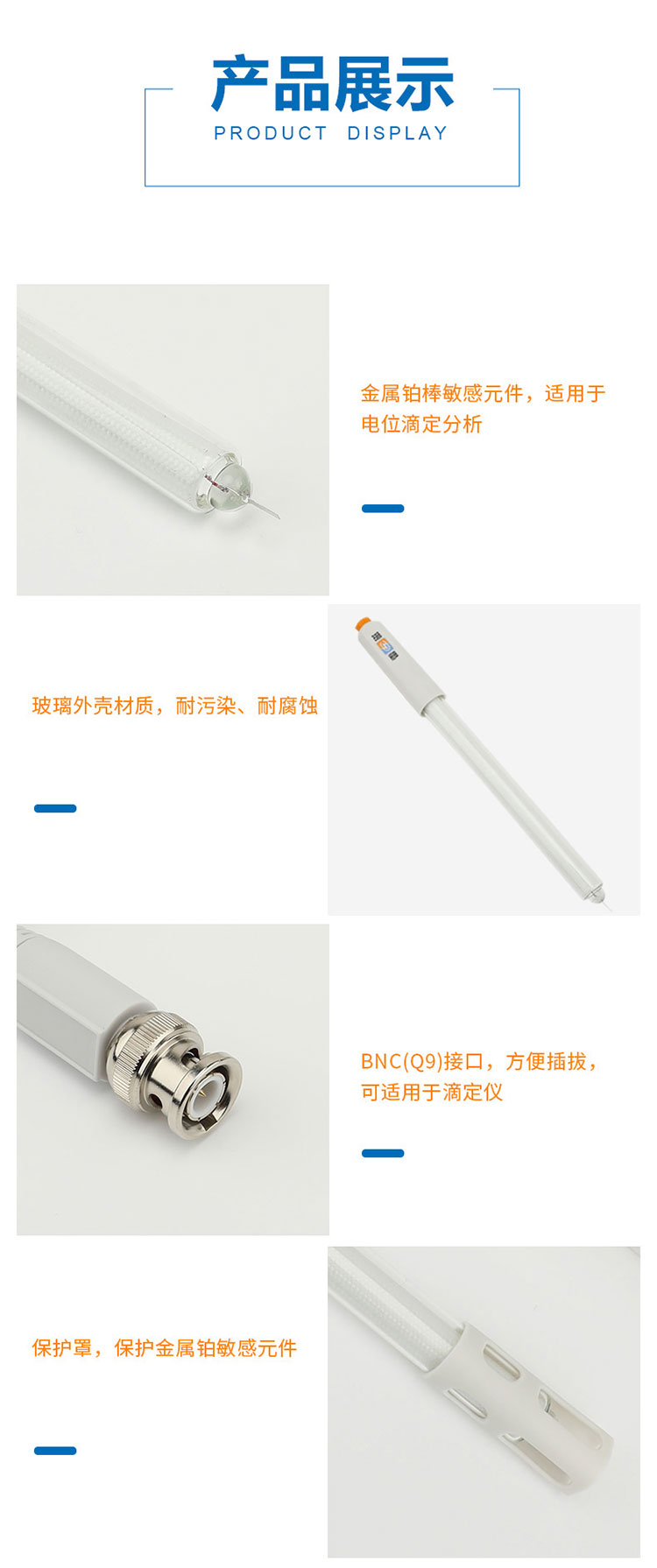 雷磁實驗室金屬電極 213-01型鉑電極傳感器探頭玻璃外殼材質(zhì)