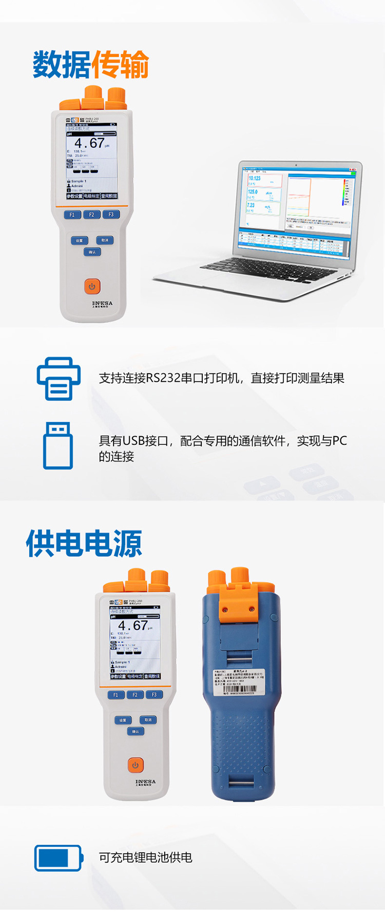 雷磁PHBJ-260型便攜式PH計標配數(shù)顯手動自動溫度補償PH檢測儀表