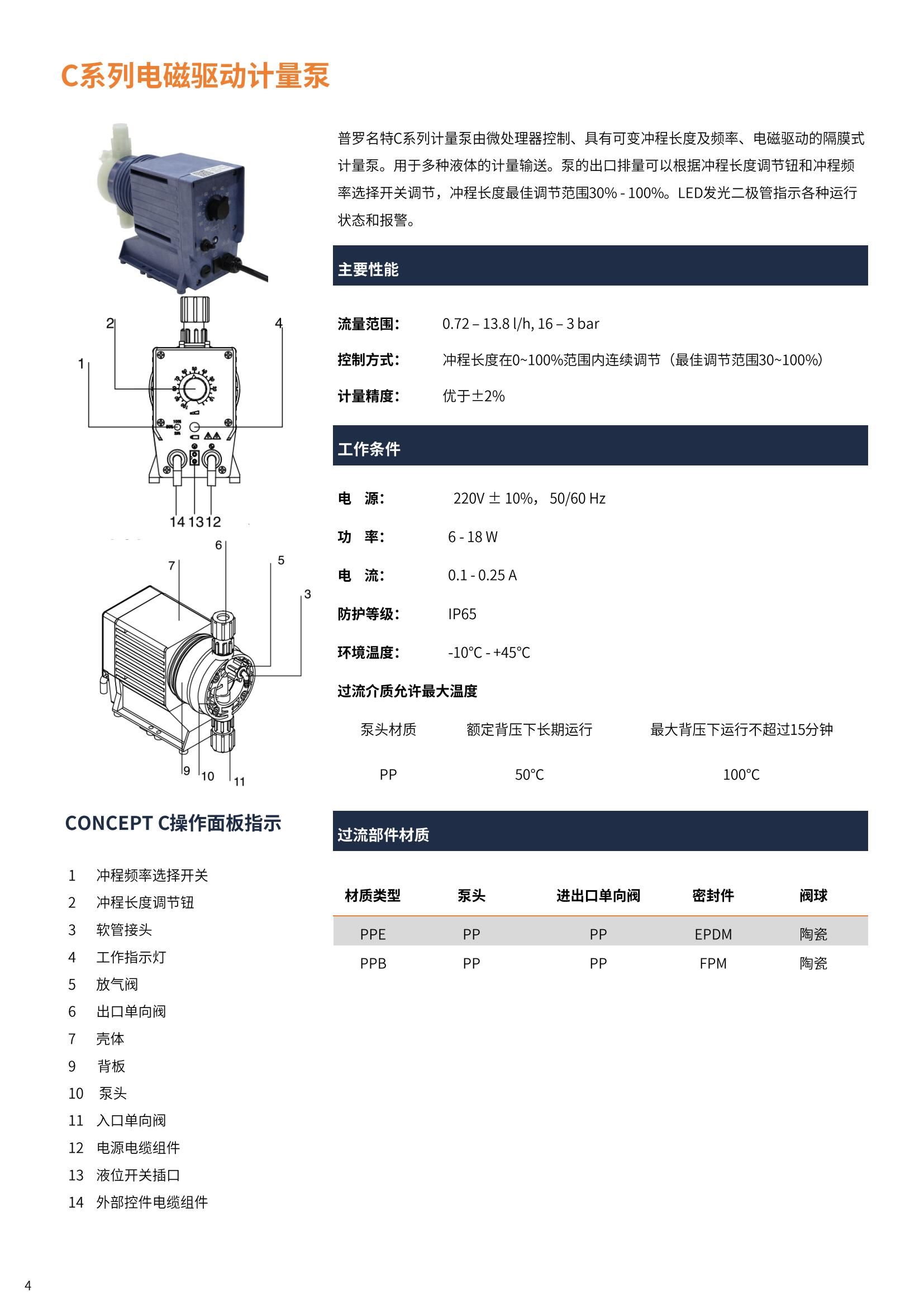 普羅名特電磁隔膜計(jì)量泵C0313PP1000A001-產(chǎn)品樣冊