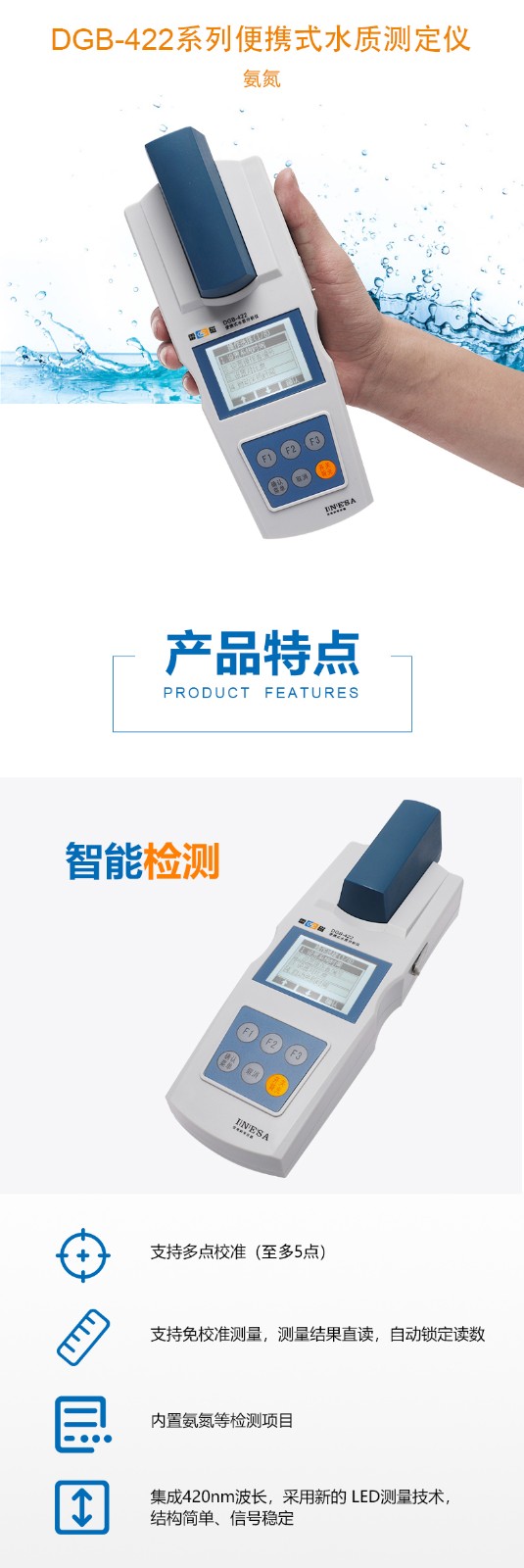 • 上海雷磁DGB-422便攜式水質(zhì)測(cè)定儀免校準(zhǔn)測(cè)量氨氮檢測(cè)儀測(cè)定儀