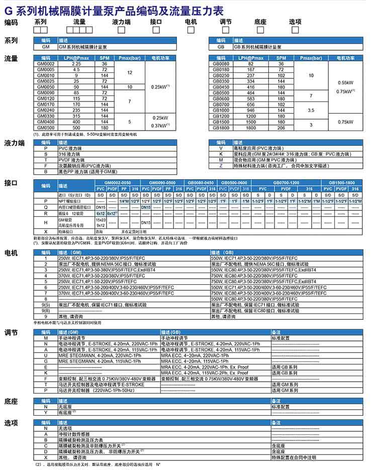 米頓羅GB系列機械隔膜泵型號表: