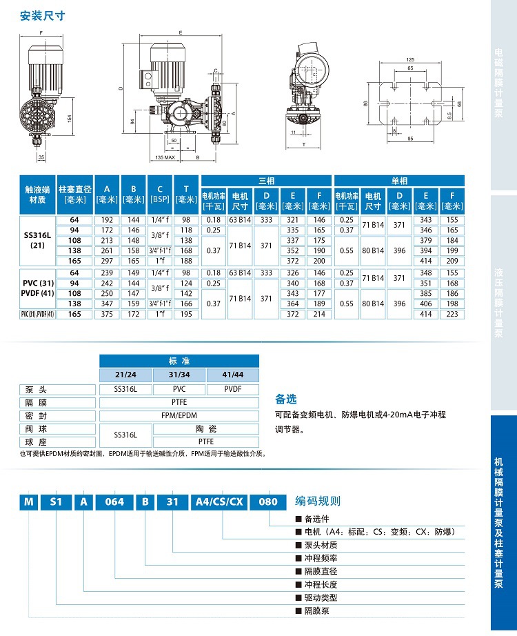 MS1系列泵是一種機(jī)械隔膜計(jì)量泵,具有彈簧復(fù)位機(jī)械裝置和鋁制外殼。
