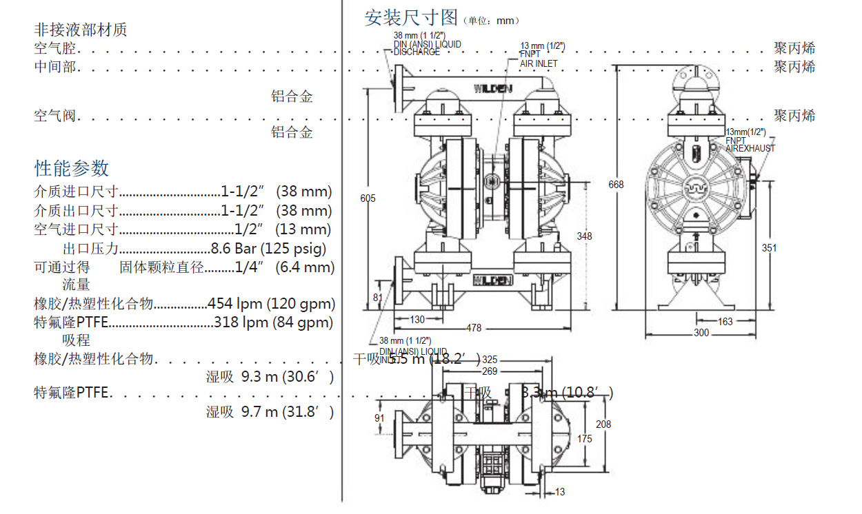 • 威爾頓工程塑料氣動(dòng)隔膜泵P400