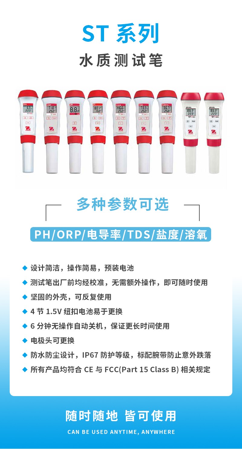• 奧豪斯水質(zhì)測試筆ST系列便攜式多參數(shù)/PH/ORP/電導(dǎo)率/TDS/鹽度/溶解氧水質(zhì)測試儀