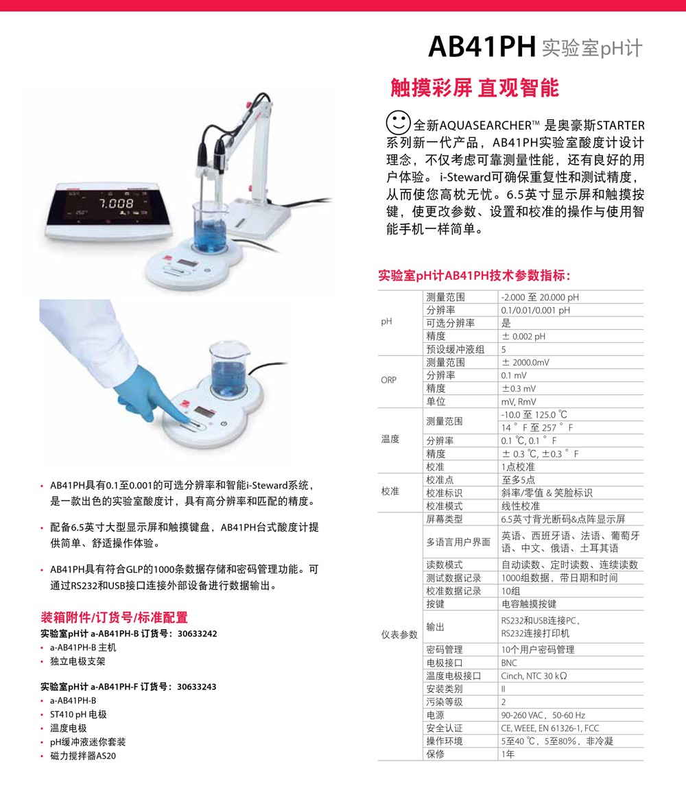 奧豪斯實(shí)驗室pH計AB41PH/AB33PH/AB23PH智能酸度計測試儀ph測定儀