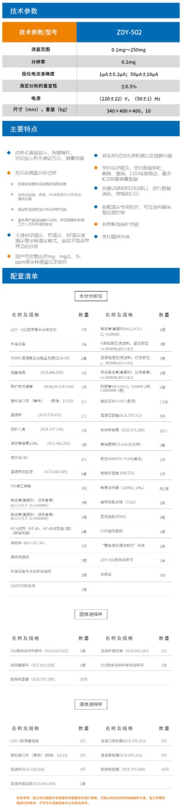 • 【雷磁】 卡爾費休水分測定儀 ZDY-502型水分分析