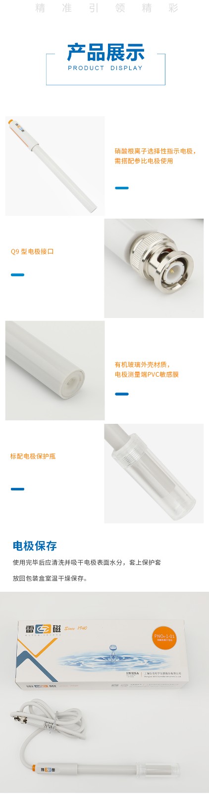 • 【雷磁】離子計(jì)復(fù)合電極探頭 PNO3-1-01型硝酸根離子電極
