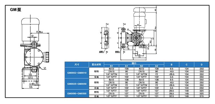 米頓羅GM系列機(jī)械隔膜計(jì)量泵型號(hào)表: