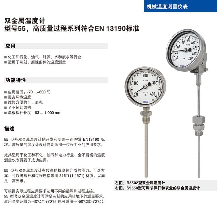 • R55/A55/S55 雙金屬溫度計 耐腐蝕不銹鋼溫度計