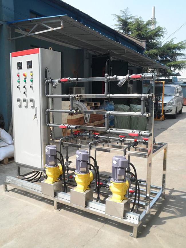 循環(huán)冷卻水,冷凍水根據(jù)不同循環(huán)比例、控制方式可實(shí)現(xiàn)定時定量加藥、遠(yuǎn)程數(shù)據(jù)控制加藥,三種藥劑分三通道加藥,每個通道根據(jù)不同的時段,不同的藥劑量設(shè)置遠(yuǎn)程控制加藥。