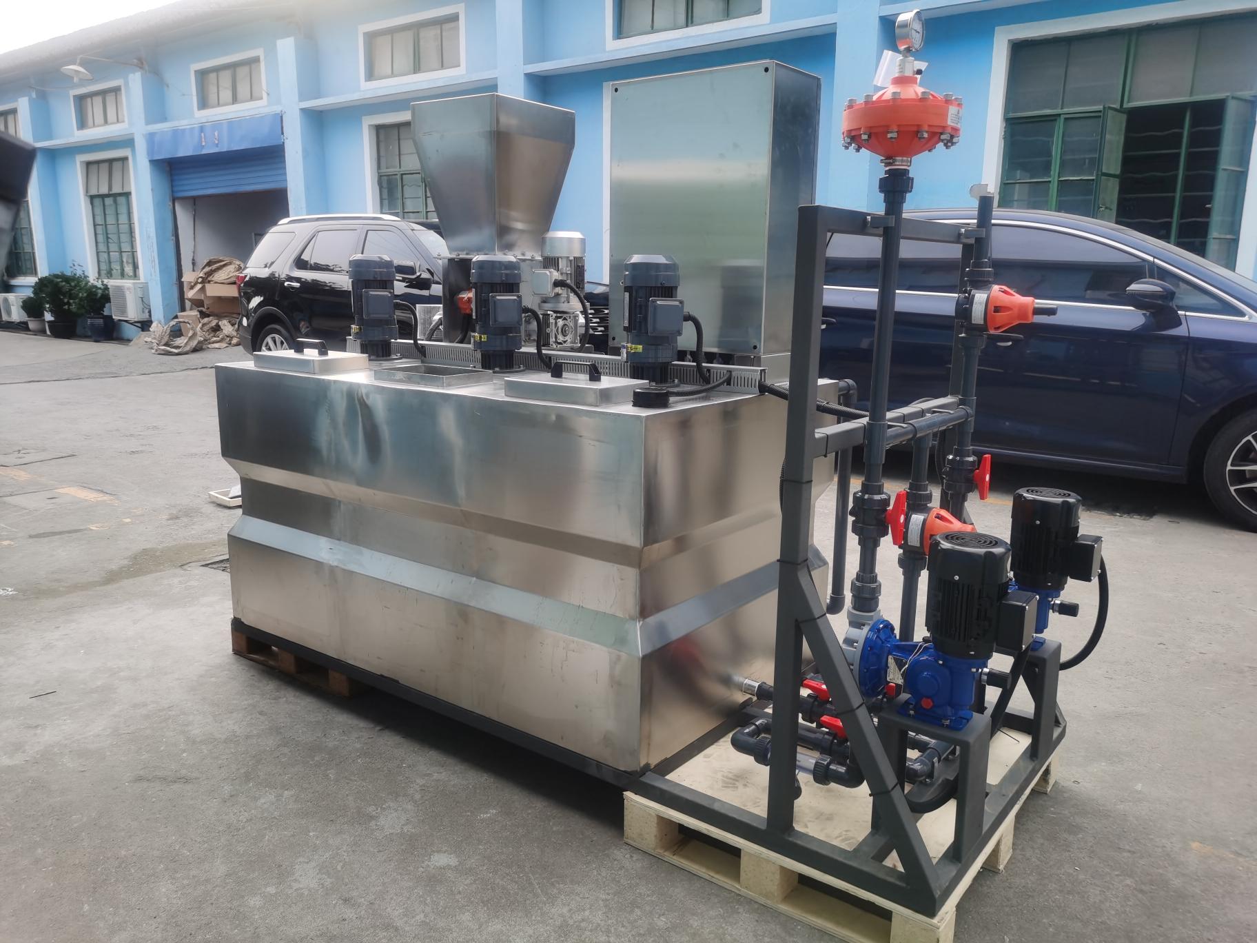 集自動配料、溶解、投加于一體,全自動運行,干投機的高精度輸送及加熱裝置的巧妙設計,可減少結(jié)塊(粒)現(xiàn)象,干粉、進水均可調(diào)整,可制備任意濃度的藥液,設備全自動運行。