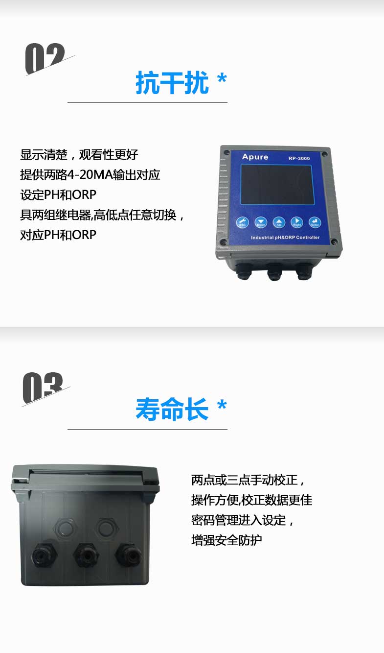 • 工業(yè)在線酸堿度計(jì)RP-3000 PH計(jì)測試儀 雙通道PH/ORP控制器愛普爾