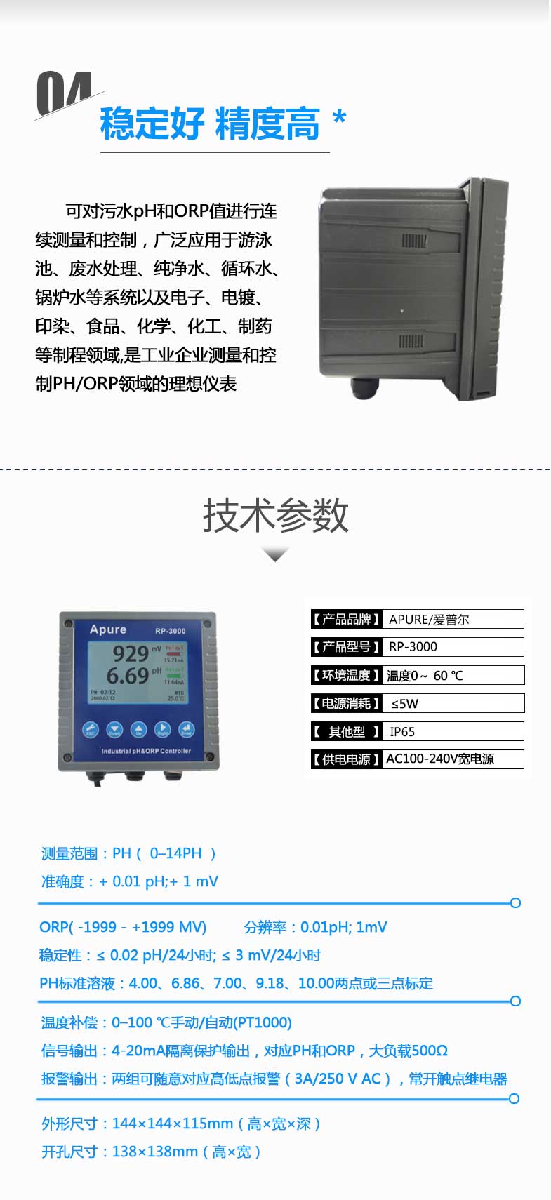 工業(yè)在線酸堿度計(jì)RP-3000 PH計(jì)測試儀 雙通道PH/ORP控制器愛普爾